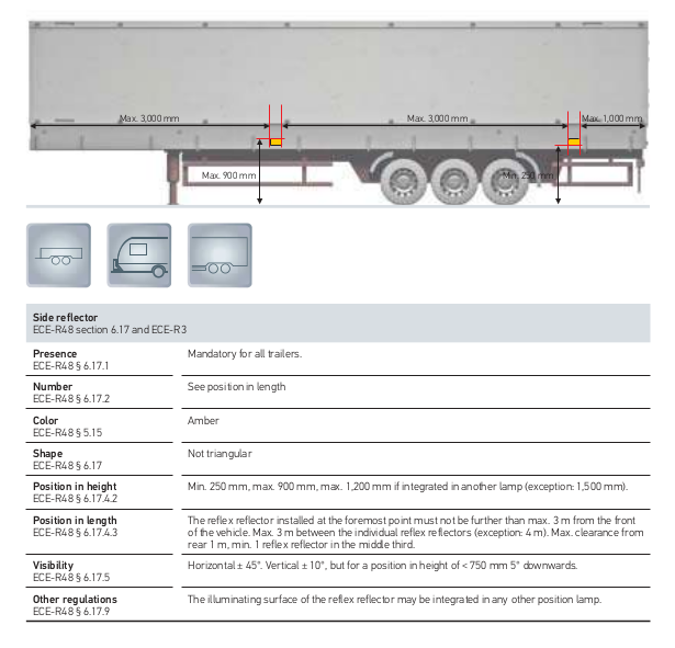 Lampki koloru pomarańczowego obrysowe stosuje się w Europie wyłącznie z boku pojazdu zgodnie ECE R48