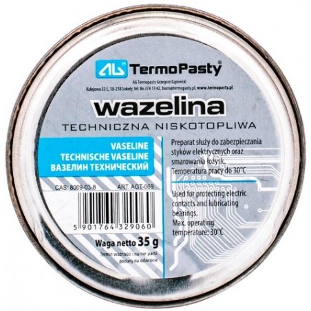 Technical petroleum jelly is a product that has a very wide range of applications. Its main purpose is the care and maintenance of components of mechanical systems and protection against abrasion and the harmful effects of weather components. Vaseline is also suitable for light friction knots, as well as for greasing rubber, plastic and leather products. The formulation is also used as a lubricant for low-loaded mechanisms, office equipment and white goods. Low-melting technical petroleum jelly prevents rubber seals from freezing and is often used as a base ingredient in various ointments.