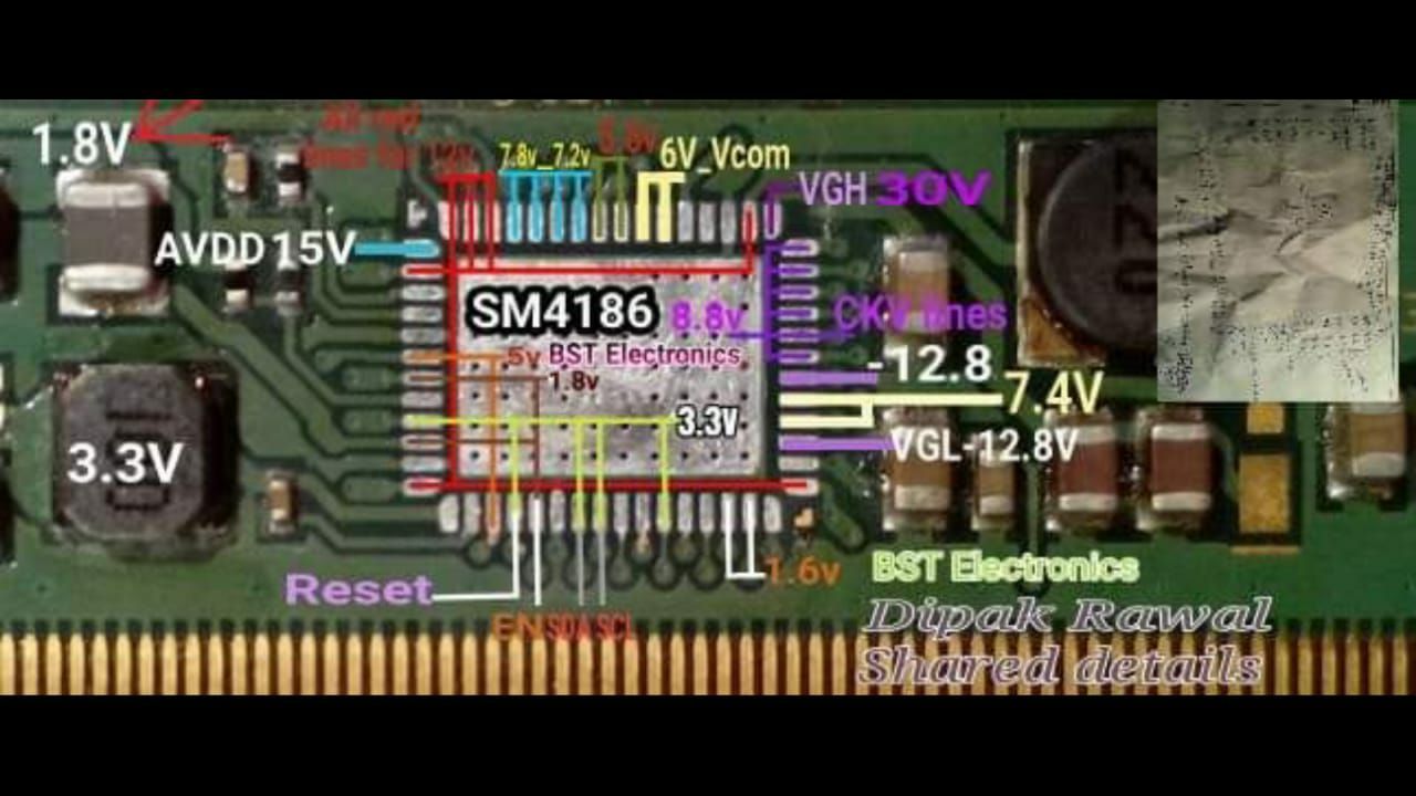 Układ scalony SM4186 służący do zarządzania zasilaniem i przetwarzania sygnału w panelach telewizorów LCD firmy Samsung. Układ posiada kilka obwodów regulatora napięcia: obwód ładujący VGH jako konwerter podwyższania napięcia i obwód ładujący VGL jako konwerter obniżający napięcie. Obwody AVDD, HVAVDD i VCOM są zintegrowane z układem scalonym SM4186.
